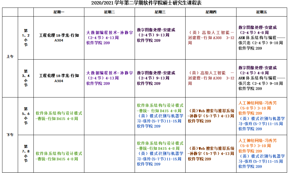 2020/2021学年第二学期新浦金350vip官方硕士研究生课程表
