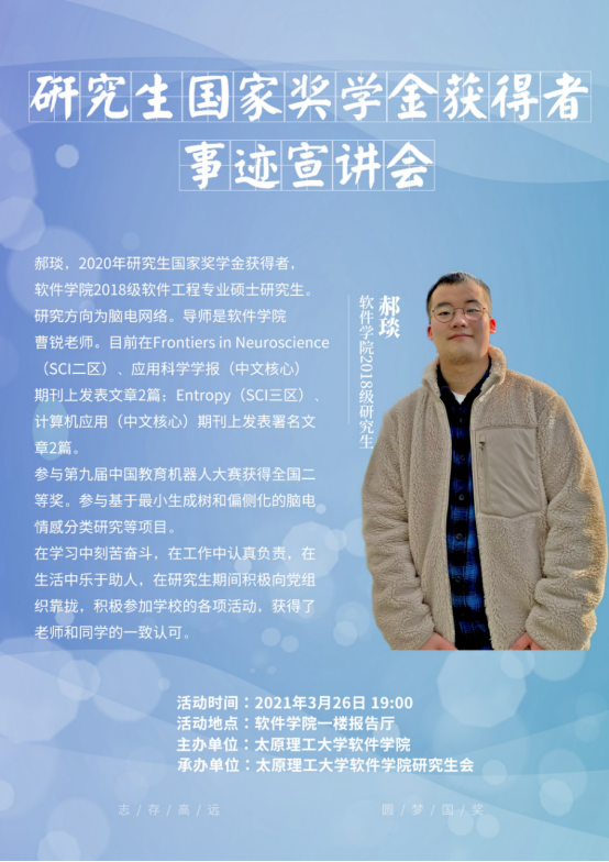 新浦金官网将召开研究生国家奖学金获得者事迹报告会