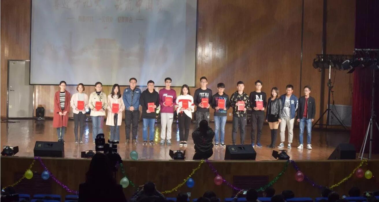 本次迎新晚会的中场是最令人期待的颁奖环节,由新浦金官网学工办主任郭飞老师为新浦金官网男子篮球队、女子篮球队、男子足球队以及新浦金官网院级优秀运动员分别颁发2017年新浦金350vip官方篮球联赛冠军证书、2017年新浦金350vip官方篮球联赛季军证书、2016年新浦金350vip官方求实杯足球赛季军证书以及院级优秀运动员证书,由各年级辅导员为今年五四表彰中获得校级优秀团干、院级优秀团干、校级优秀团员以及院级优秀团员的学生代表们颁发证书。