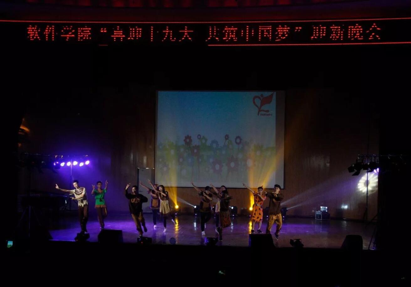 炫酷的灯光下,艺术团舞蹈队的女孩们跳起了活力四射的舞蹈,流利的动作可以看出她们的娴熟,精彩的表演后是她们的汗水。