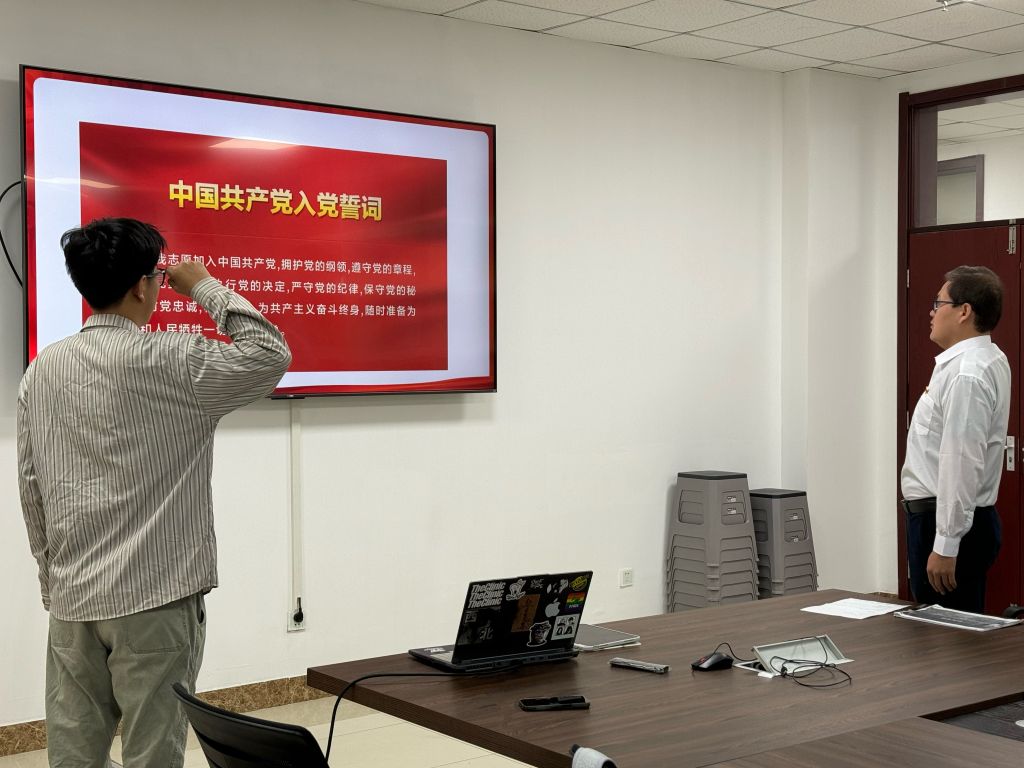 随后,支部书记王泽作为领誓人,庄重举起右拳,带领全体党员重温入党时的铮铮誓言。每一句誓词都铿锵有力,再度唤起党员们对初心的深刻铭记,激励着全体党员以更加坚定的信念和昂扬的斗志,继续为党和国家的宏伟事业不懈拼搏、奋勇前行。