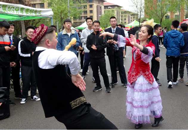 在蒙蒙细雨和阵阵凉风的映衬下,活动正式开始。首先,软件1710班饱含激情的朗诵《将进酒》,将在场所有人的思绪都带到了盛唐时期,仿佛看到了那个怀才不遇而又乐观通达的李白。随后,身穿各民族传统服饰的同学们排着整齐的队伍,伴随着悠扬的音乐,展示了我国各民族的舞蹈、礼仪和服饰等,使大家真切地感受到了我国浓厚的民族风味,并将整个团日活动推向了高潮。最后,2017级各团支部为大家展现各民族的风采,并向前来参加本次活动的老师及同学们介绍各民族的传统文化、语言、特色食物、特色节日等,通过游戏、舞蹈、音乐等方式,将各民族的文化特色展现得淋漓尽致,使东区小广场真真正正的成为了一个“民族之林”。