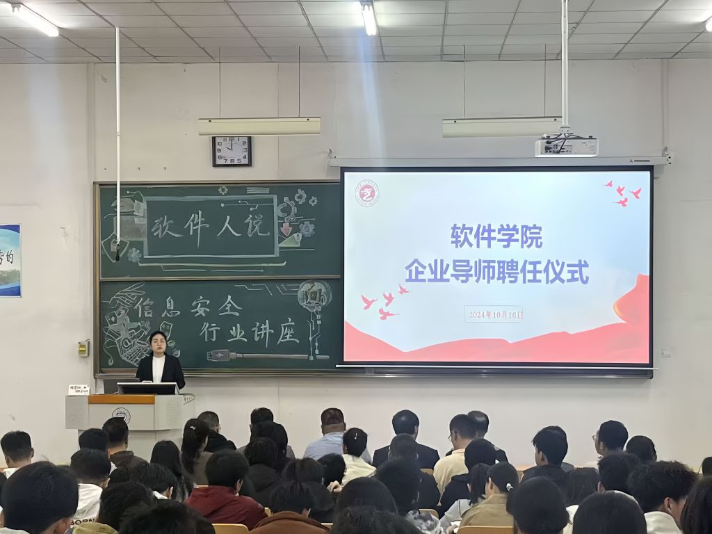 10月16日,新浦金350vip官方在行知楼B119举办“软件人说”系列讲座之信息安全行业讲座。本次讲座特邀天融信TCSP信息安全行业认证资深讲师温晓飞老师主讲,新浦金350vip官方党委书记张文基、副院长曹锐,天融信校企事业部总经理刘洋,软件学院辅导员和各年级学生代表参加。讲座由学生工作办公室副主任张瑞琪主持。
