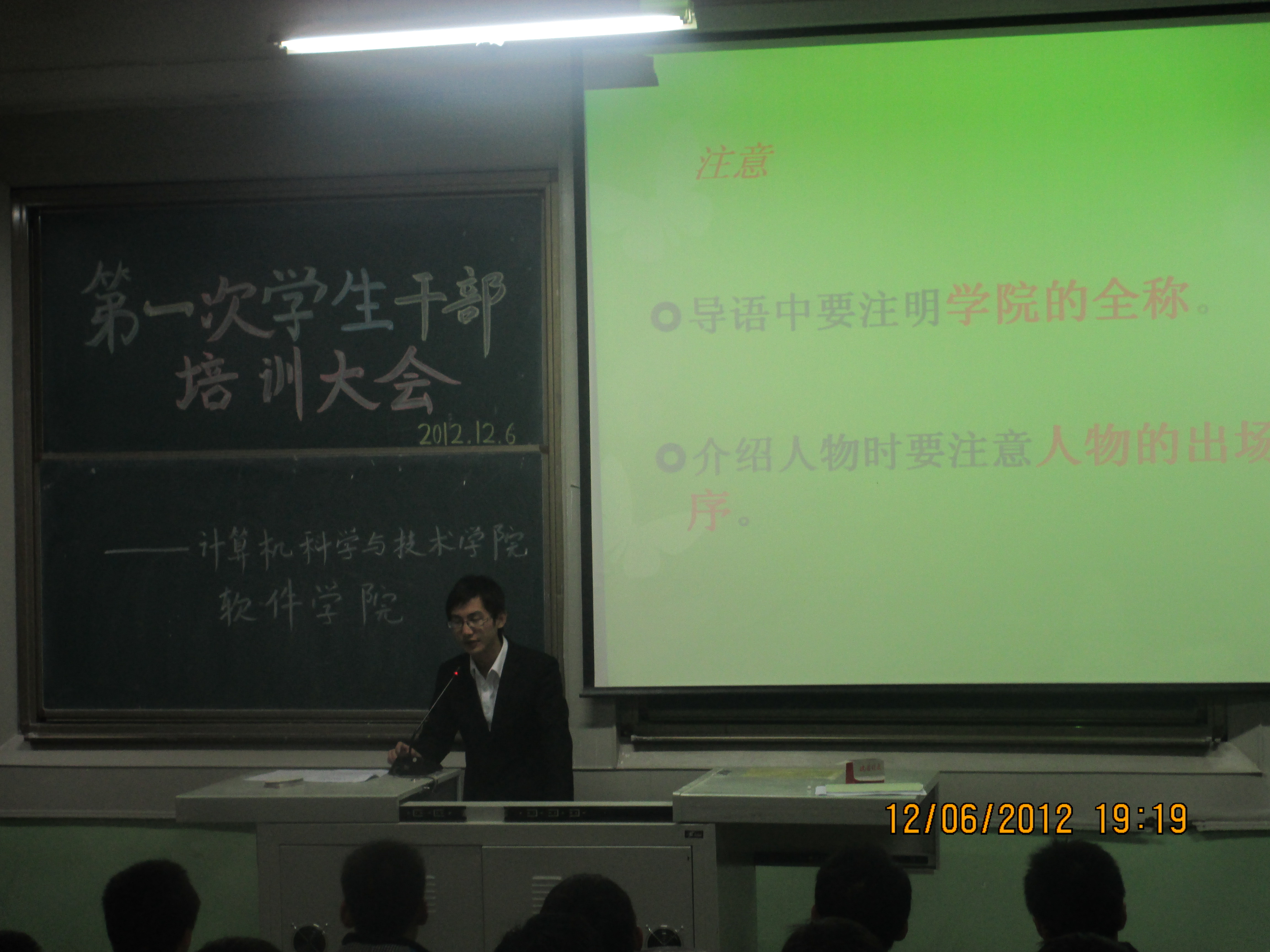 会上,院团委信息中心为大家讲解了新闻稿件的写作方法及图片拍摄的注意事项,并展示了近期创刊的电子杂志;院团委礼仪队以一些简洁明了的图文及影像资料向大家讲解了一些社交礼仪方面应当注意的内容;院学生会办公室详细讲述了策划书的写作要领,同时要求大家正确使用学校的公共物品及资源;来自矿业工程学院的学生展示了精彩的PPT效果,阐述工作性PPT的制作理念,并介绍了一些抓住观众眼球的技巧;最后,院科协技术部借助“绘声绘影”视频制作软件,与大家分享了一些基础的视频制作的操作方法。