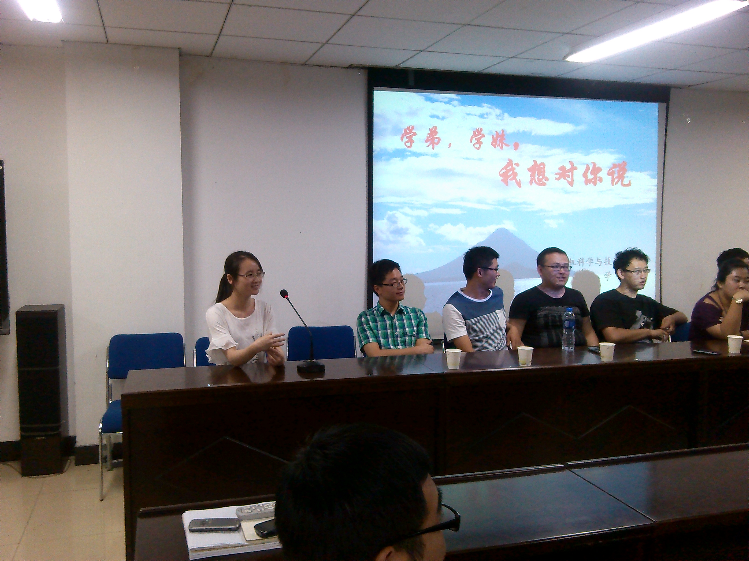 2013年6月26日晚,新浦金官网在博学馆七楼举办了题为“学弟,学妹,我想跟你说”的经验交流会,新浦金官网团委老师和毕业生辅导员代表出席了此次交流会,优秀的大四毕业生代表参与了和学弟学妹的交流。首先,辅导员作了关于大学生成长方面的演讲,启发学生在大学期间要以学习为主,多动手,多动脑,多参与社团活动,积极响应十八大“建立一个学习型社会”的口号,为实现中国梦而努力奋斗。交流会期间,优秀的大四毕业生谈了如何度过大学生活,并将自己在大学中积累的经验与学弟学妹分享。