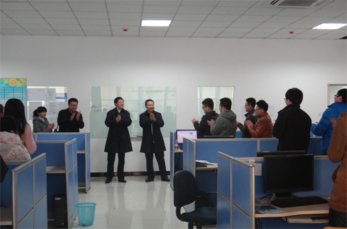1月11日,校党委书记吴俊清、校长吕明在校长办公室主任邸峰陪同下,专程赴北京中软国际有限公司看望新浦金官网正在这里参加实训的学生。