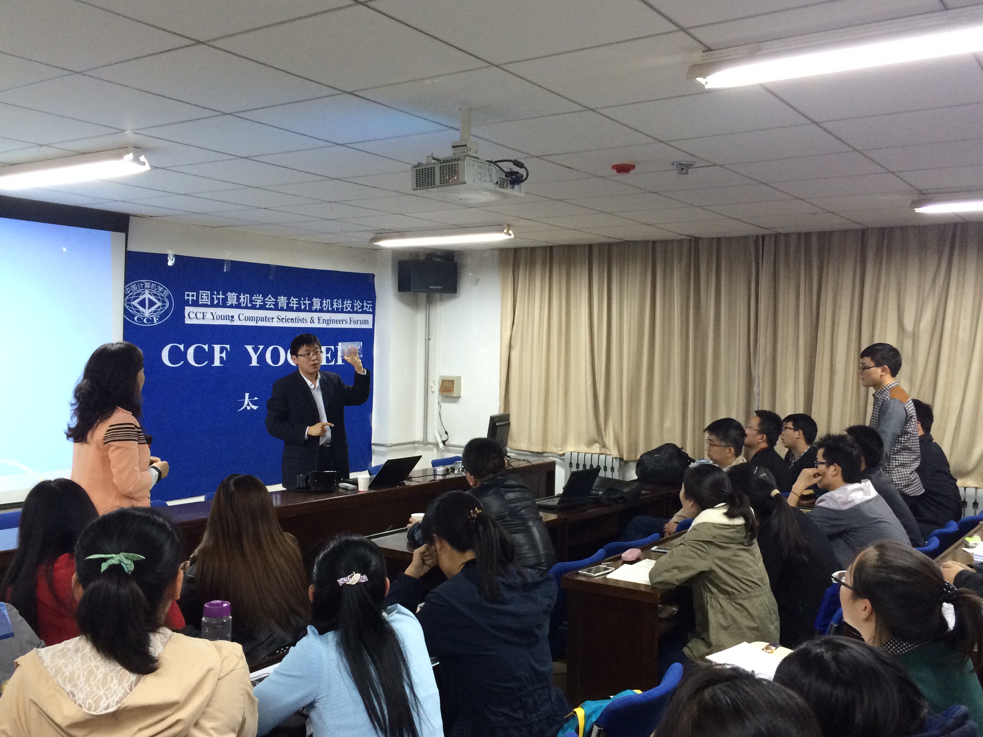 2014年4月16日,CCF 太原分部和YOCSEF太原分论坛在新浦金350vip官方计算机科学与技术学院成功举办了“IT青年人才发展之路”论坛。本次论坛由CCF YOCSEF太原分论坛候任副主席赵涓涓副教授担任执行主席。CCF太原分部副主席陈俊杰教授、CCF YOCSEF太原分论坛主席强彦副教授、太原分论坛候任主席秦品乐副教授、太原通泽重工有限公司王明宇和张杰高级工程师等100余人参加了此次论坛,共同探讨了关于“IT青年人才发展”相关问题。