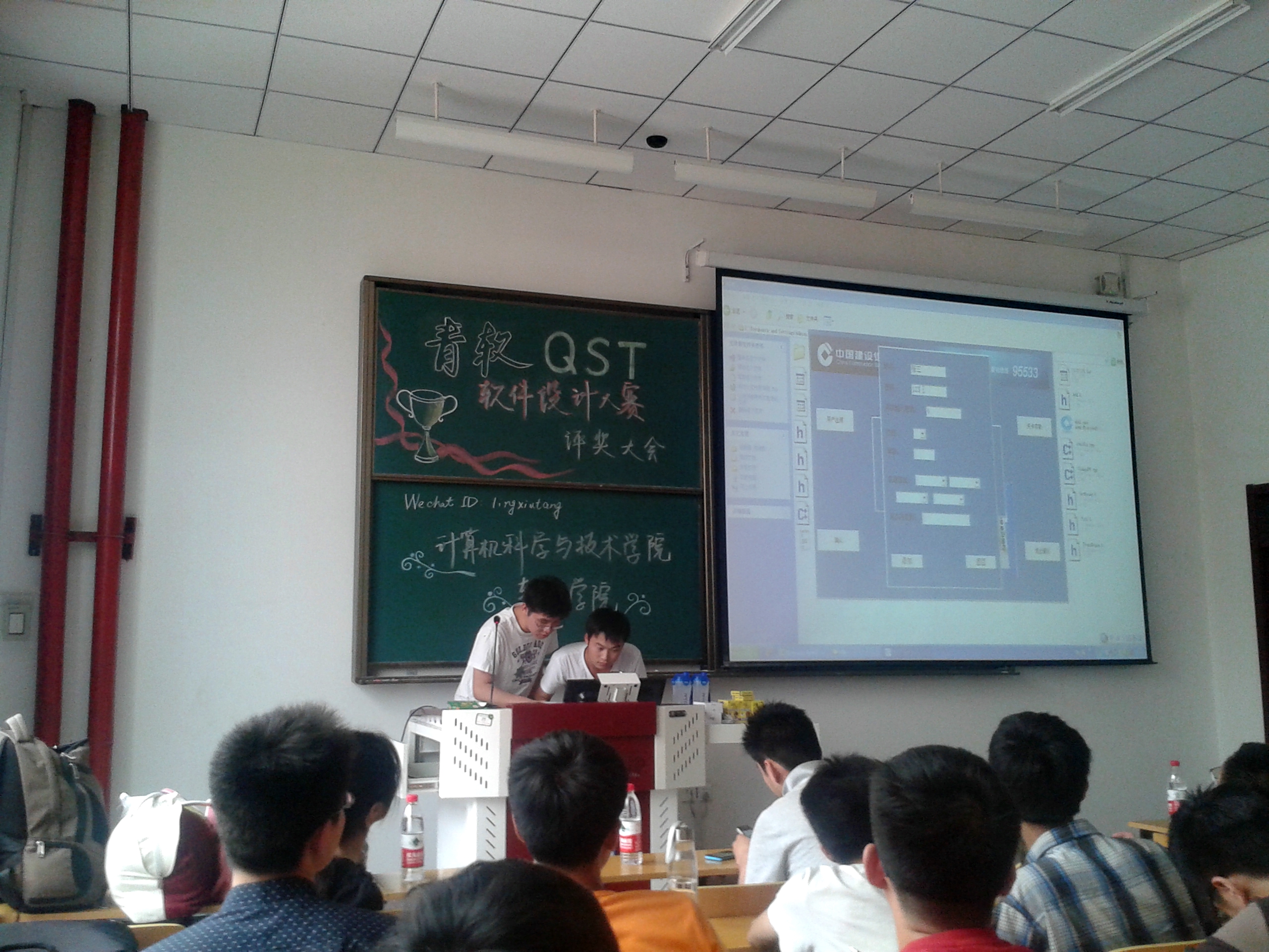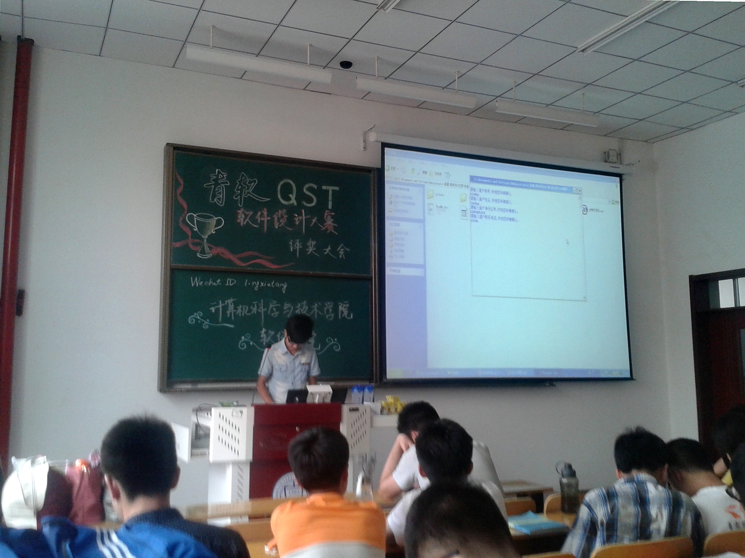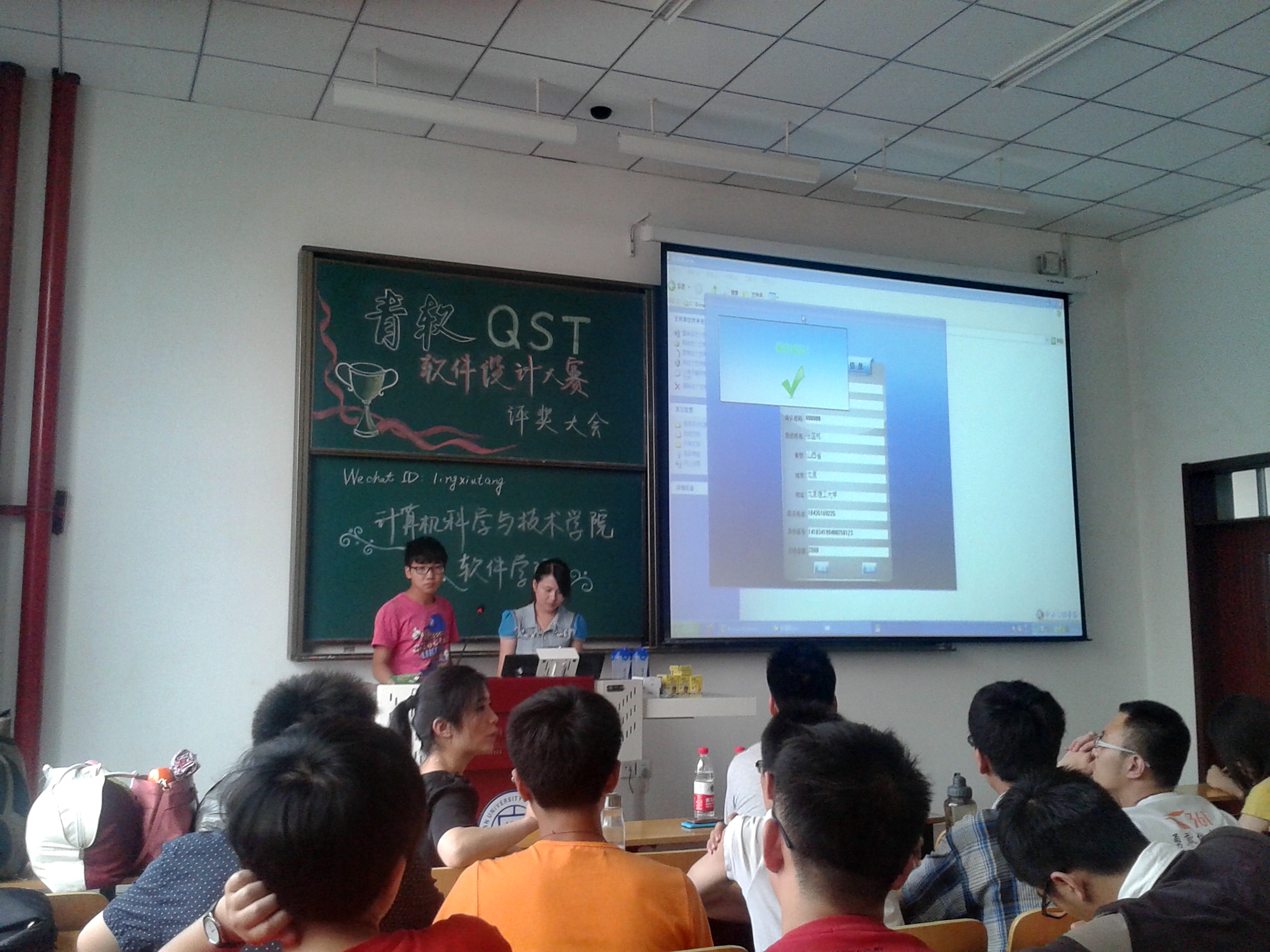 颁奖大会现场,徐美娇老师首先对本次比赛所甄选出来的作品进行了评判,她对比赛中的优秀设计作品表示肯定。随后由各参赛队伍进行作品演示。其中,张雷组所做ATM系统界面新颖、功能齐全,获得了此次比赛的冠军。武文良组将动漫元素添加于ATM系统当中,使其更显青春活力,获得了优秀奖。最后,徐老师指出:大赛还是跟真正意义上的软件设计有一定差距,但学生的风采让她感到很欣慰。软件专业是在现代社会极具技术性的专业,真正掌握专业技能对于自己的发展有着不可估量的帮助。
