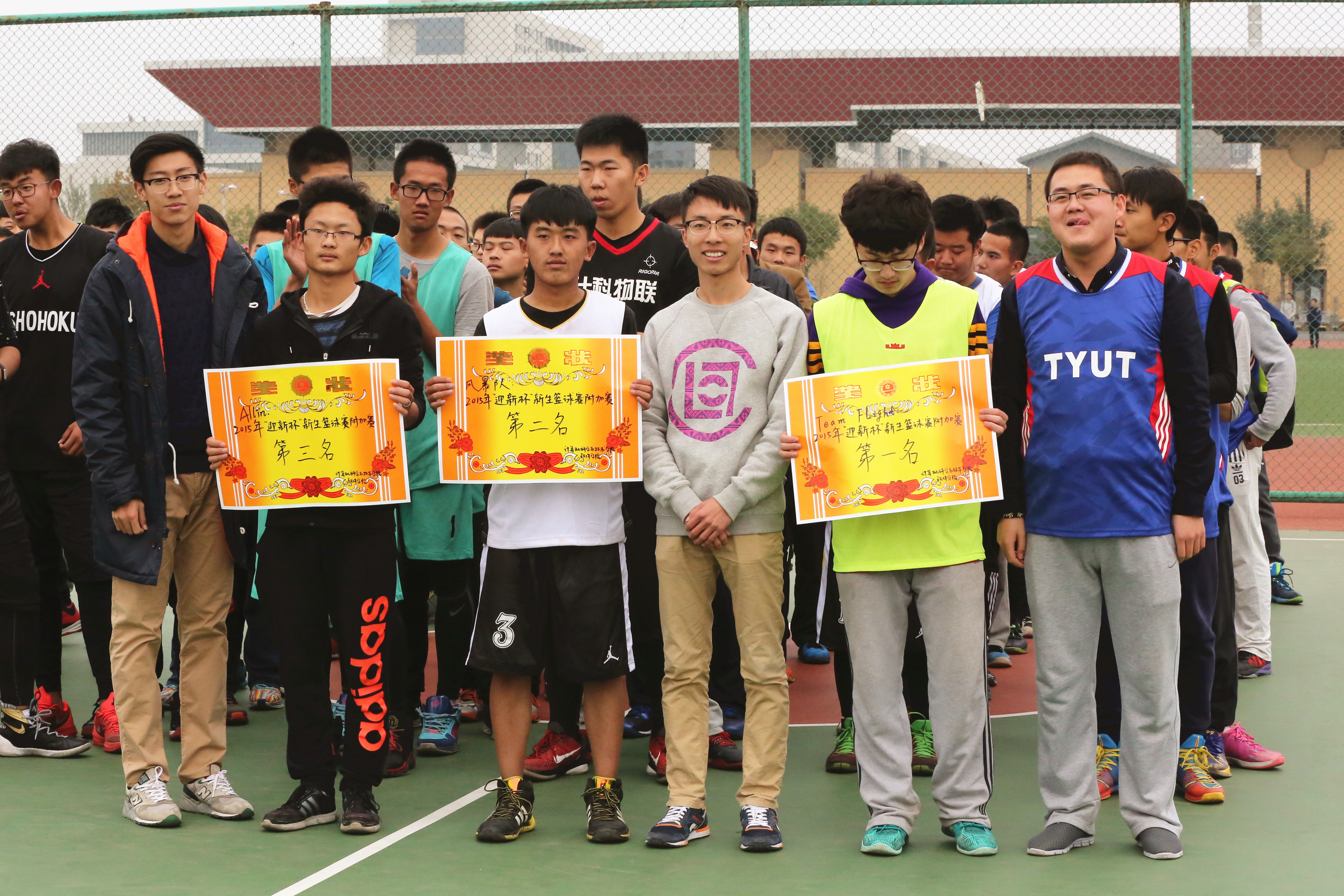 比赛结束,新浦金官网团学机构主席团为新生篮球赛的获奖队伍颁奖并与篮球队全体成员拍照留念。至此本届“迎新杯”新生篮球赛完美落幕。