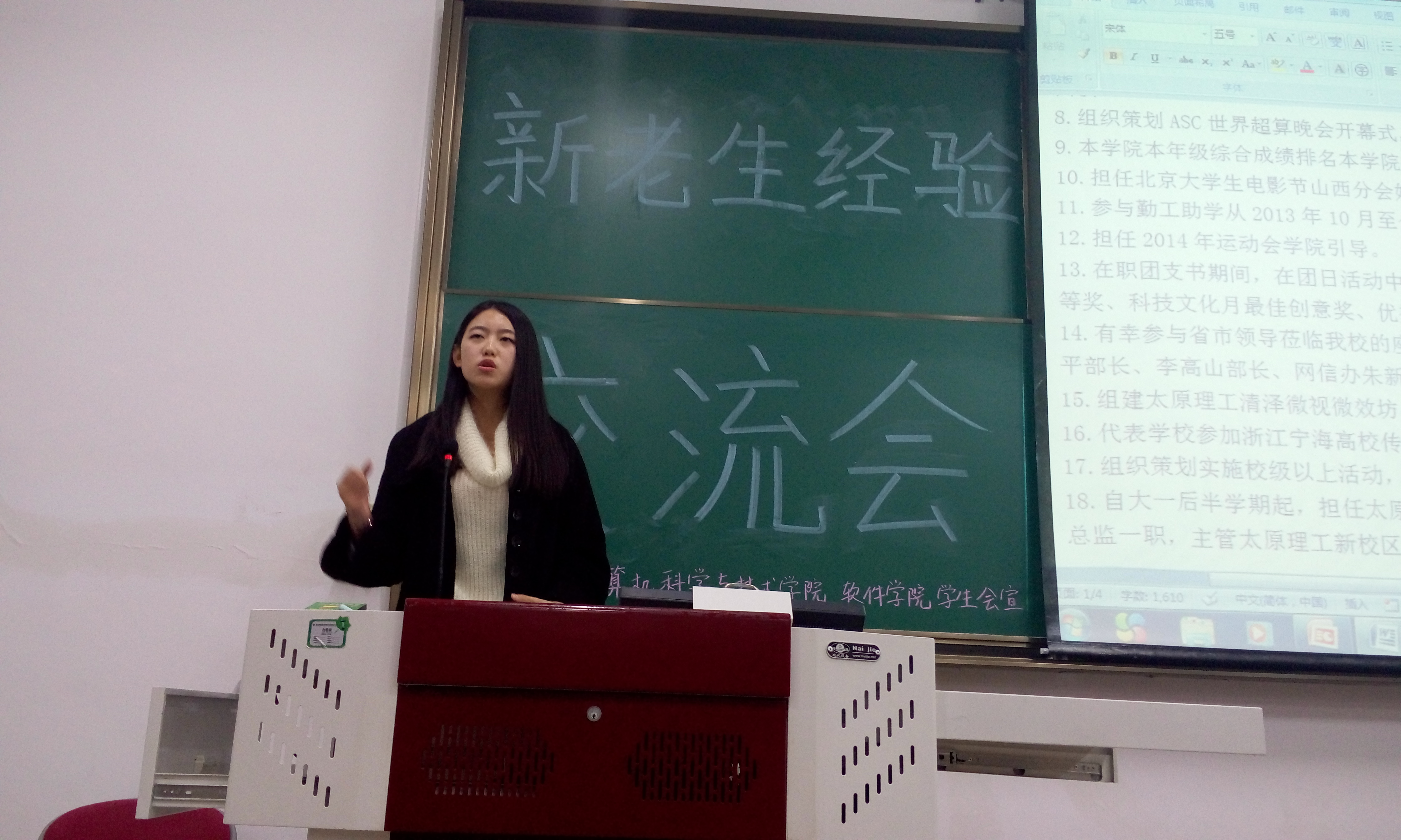 11月6日,由计算机科学与技术学院 新浦金350vip官方学生会举办的新老生经验会于晚七点正式开始,在主持人的开场白以及学生会主席发言之后,五位学长学姐与新生们一起分享了在大学的经历以及收获。