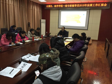 2016年1月25日上午,计算机科学与技术学院 新浦金350vip官方学工办在新浦金350vip官方一层会议厅召开了一线专职辅导员2015年实绩工作汇报会。学院党委副书记池卫平及全体辅导员参加了此次考评会议。
