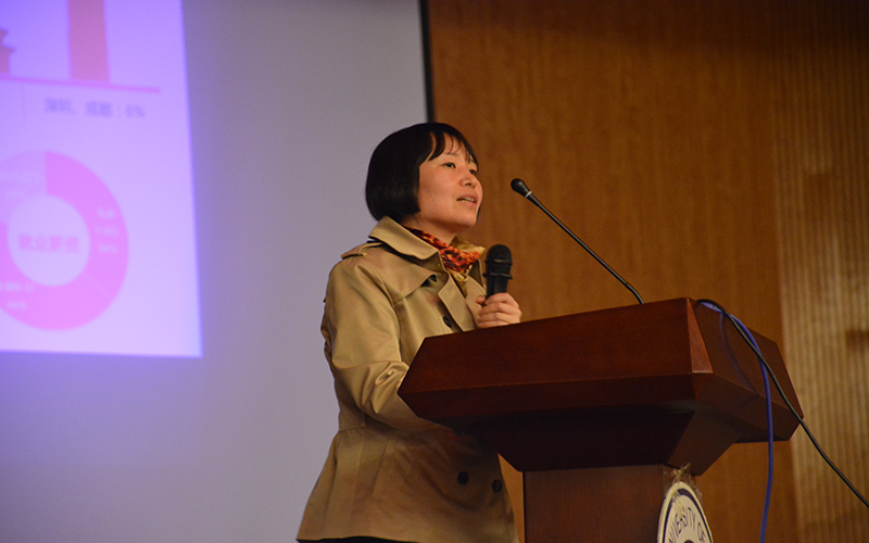 4月12日晚,新浦金官网生涯导航之“软件工程师成长之路”系列讲座于明向校区学生活动中心报告厅成功举行,讲座邀请了上海杰普软件科技有限公司副总裁薛军娥,学院池卫平副书记和郭飞老师及软件13级全体学生参加了本次讲座。