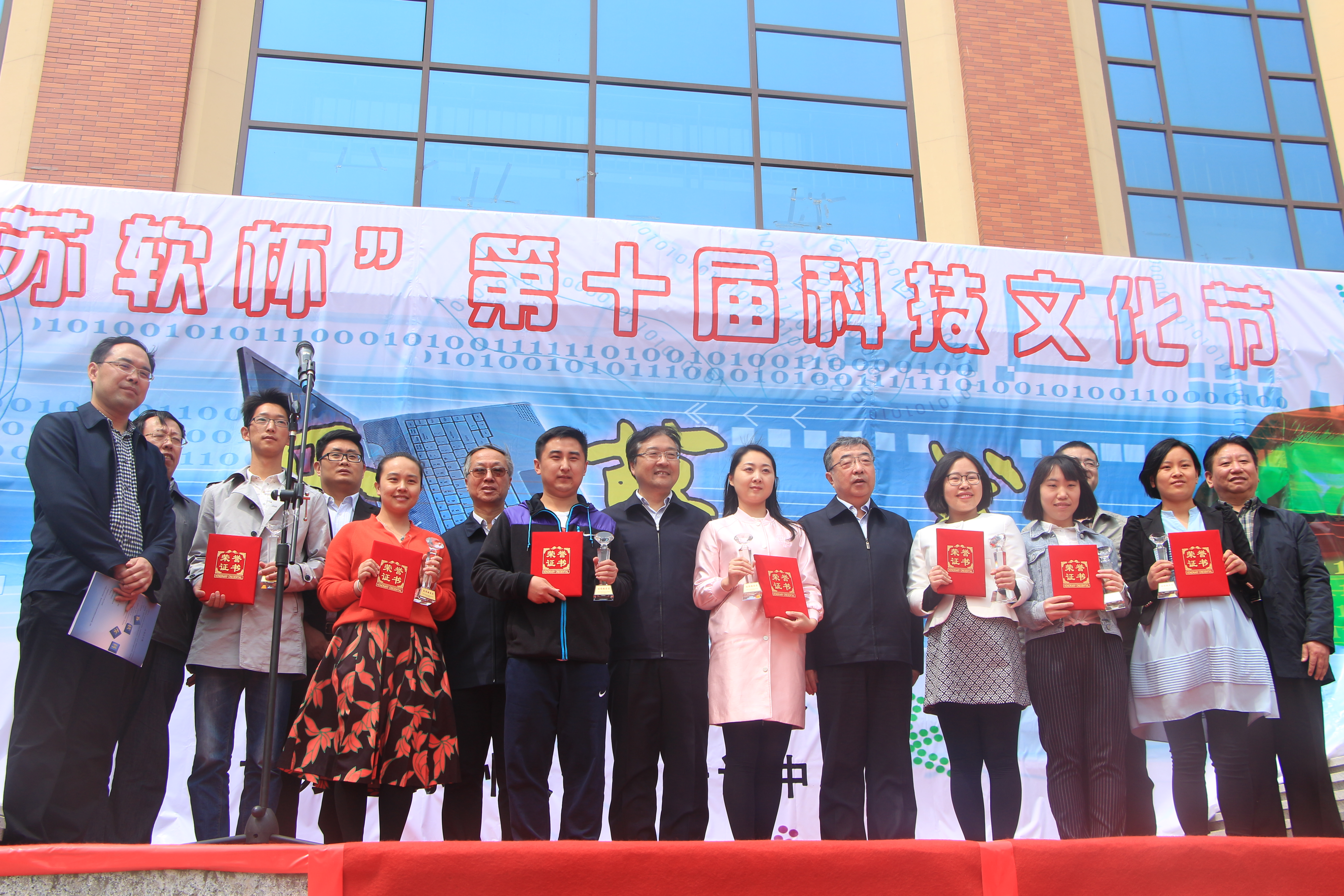 陈俊杰院长宣读了“关于表彰学生科技竞赛优秀指导教师和优秀辅导员的决定”,主席台领导为获奖者颁发了奖状和奖杯。院党委副书记池卫平介绍了本次科技文化节 的主要活动内容。本届科技文化节以“分享多元科技,传承经典文化”为主题,面向全校学生,在为期一个月的活动中,将开展科技学术、文化艺术两大板块的活 动,主要有“风雨十载 异域博览”国家与民族族风情博览会、中华魂系列活动之谁“语”争锋、“变装之夜”狂欢你的夏日青春舞会、“苏软杯”程序设计大赛、识 时通“辩”辩论赛、“硬件英雄”——拆装机大赛、行知讲坛系列讲座、“精彩世界,等你发声”影视配音大赛。