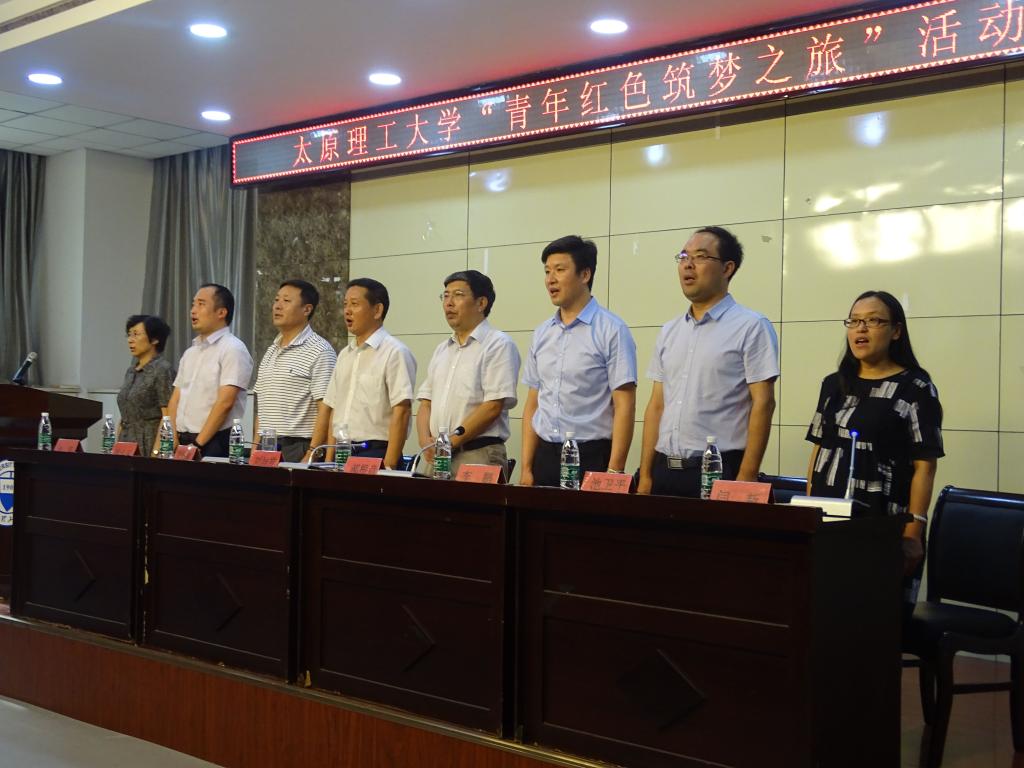 在雄壮的国歌声中,启动仪式拉开帷幕。校学生处处长郝根彦代表主办方宣读了我校第四届“互联网+”大学生创新创业大赛“青年红色筑梦之旅”活动方案,学校将于7月至9月组建“科技中国小分队”、“幸福中国小分队”、“健康中国小分队”、“教育中国小分队”、“法治中国小分队”、“十九大宣讲小分队”,集中对接吕梁兴县、忻州偏关等地,分散走进革命老区、贫困地区,从质量兴农、绿色兴农、科技兴农、电商兴农、教育兴农等多个方面开展帮扶工作,接受思想洗礼、学习革命精神、传承红色基因,将高校的智力、技术和项目资源辐射到农村地区,推动当地社会经济建设,助力精准扶贫和乡村振兴。
