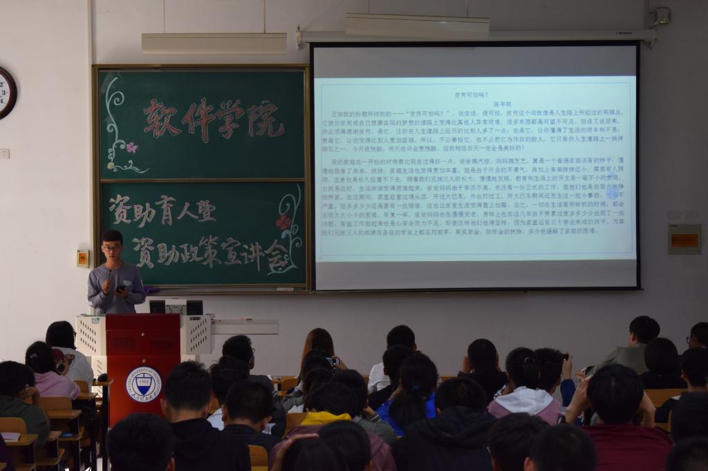 通过此次的宣讲会,使18级新生更好的认识到学校、政府对贫困生的扶持与关照,让家庭经济困难的学生摆脱苦恼,为国家培养人才做出了贡献。