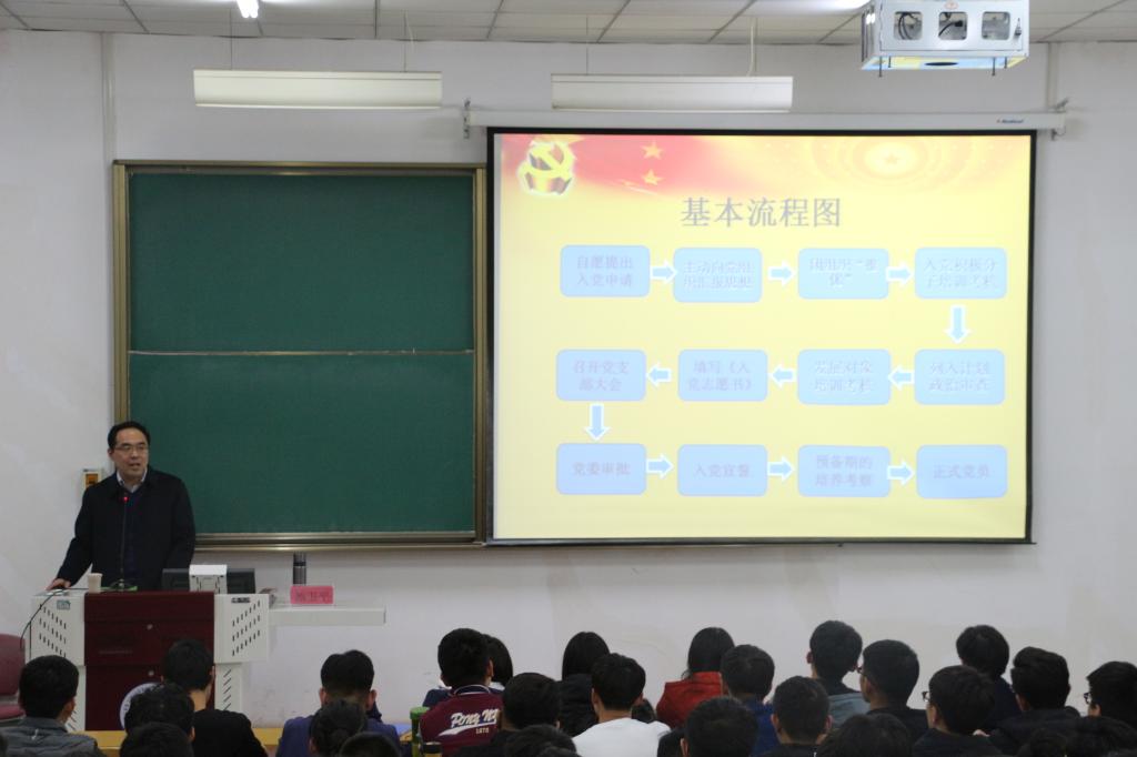 2018年11月5日晚7:00,新浦金350vip官方于明向校区行知楼C122举办了2018年第二期入党积极分子培训班开班仪式暨理论课程第一讲,由新浦金350vip官方党委书记池卫平授课,本期入党积极分子共148人参加了此次培训。
