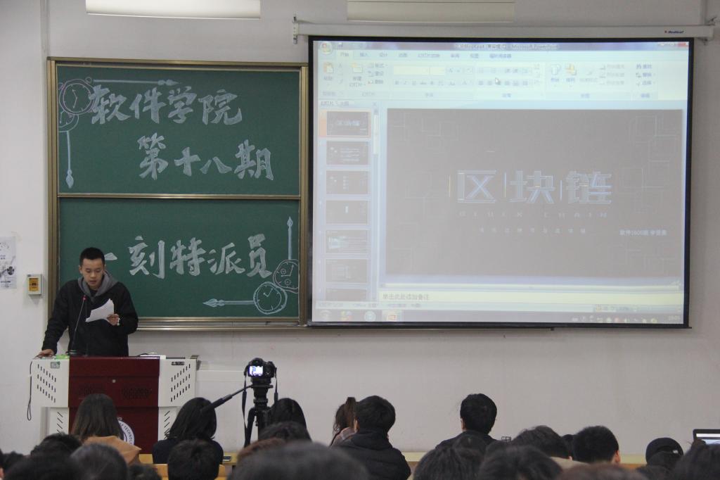 本期“一刻特派员”由软件1606班李晋昊、1605班刘小溪和1603班仝明宇三位同学担任。活动开始,张希琼老师讲解了“一刻特派员”活动的由来以及党建活动的重要意义,并鼓励同学们积极报名参加活动与同学们交流分享自己的所见所闻所感。接着,李晋昊同学首先为大家浅谈了比特币与区块链的相关情况,阐明了它们在网络中存在的意义和发挥的作用;随后,刘小溪同学基于大学生对微博热搜的关注进行了研究与分析,告诫我们要正确利用微博热搜,增强反间意识,维护国家安全;最后,仝明宇同学以“九零后已经开始失去了”为主题,谈到面对童年记忆被尘封,“九零后”身上的责任感日渐加重的现实情况,我们应拥怀新希望,不惧失败,善良勇敢。