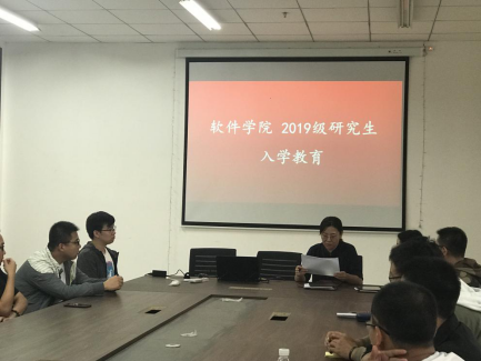 会议初始,由郭飞老师对各位新生表示了祝贺和欢迎,介绍了几位研究生学长、学姐,并让所有2019级学生进行了自我介绍。