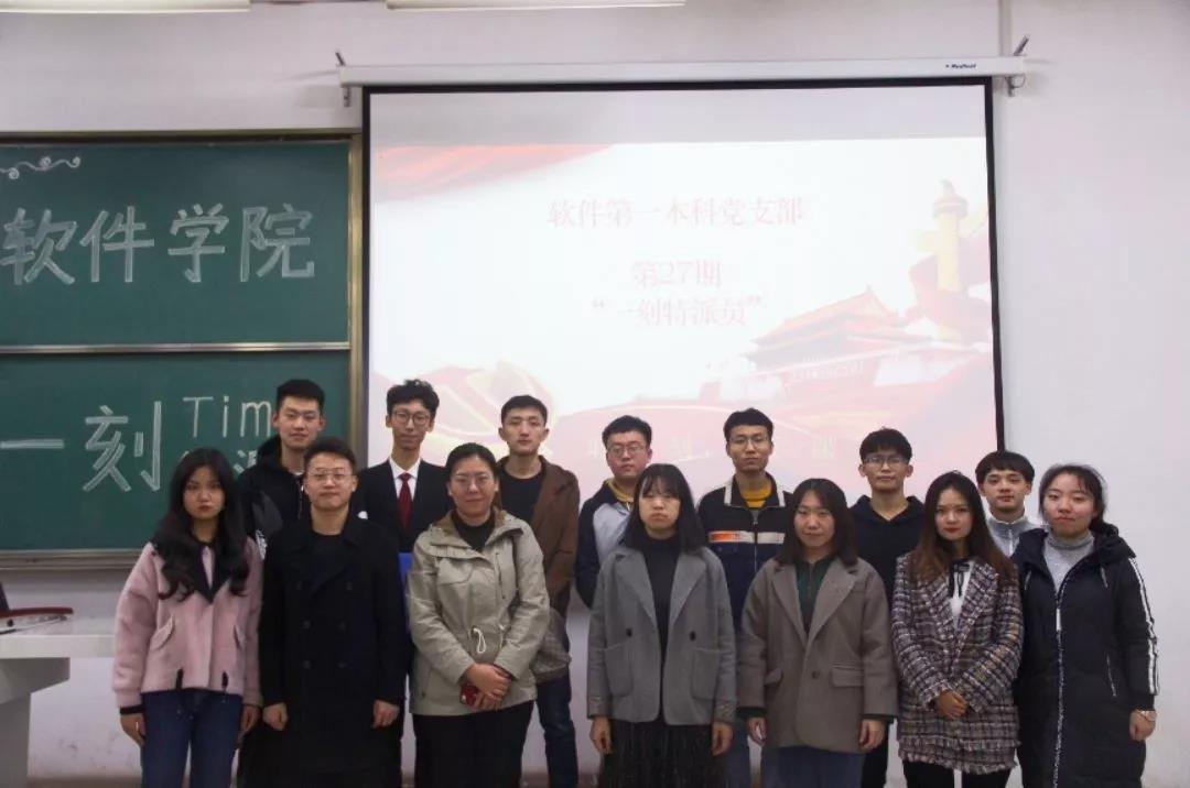 又是沐浴改革际,又是党建新风时。11月7日晚19:00,新浦金350vip官方于明向校区行知楼c122举办了第二十七期“一刻特派员”党建活动。参与本次活动的有软件第一本科党支部书记郭飞老师、组织委员张希琼老师,辅导员卫晓鑫、张冰洁、郭丽芳、张瑾昊老师,以及部分学生发展对象、积极分子。本期“一刻特派员 ”由马若鑫、靳宇琛、秦少波三位同学担任。
