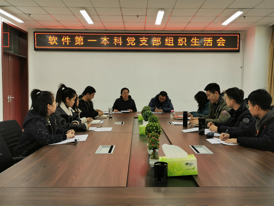 2019年12月4日中午12点30分,软件第一本科党支部“不忘初心、牢记使命”专题组织生活会于学院楼311会议室顺利开展。本次会议由支部书记郭飞主持,组织委员张希琼、宣传委员梁明晶、正式党员卫晓鑫以及其他6名预备党员同志参会,院党组班子成员赵杰同志参会。