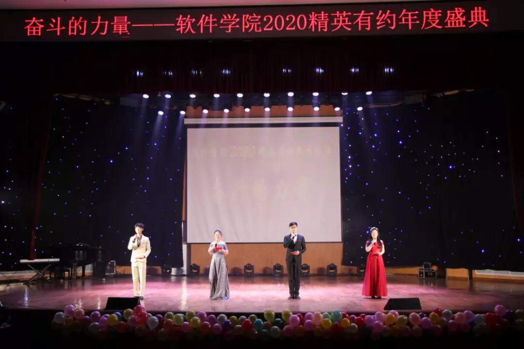 2019年12月18日晚七点,奋斗的力量——新浦金350vip官方2020精英有约年度盛典在明向校区学生活动中心报告厅举行,新浦金350vip官方党委书记池卫平、院长金燕、党委副书记吕晓勇、副院长冯秀芳、党政办主任赵杰、学工办主任郭飞、实训部主任曹锐、实训部副主任王星魁以及新浦金350vip官方全体辅导员和各级同学参加了此次晚会。
