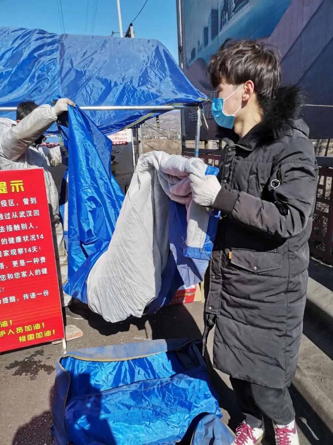 2月14日,夜间的风很大,气温很低,早些时候搭建的帐篷被大风刮坏了。2月15日早一接到通知,我就赶往清徐县工商银行取活动房钥匙,并立即开车赶到清徐南高速口收费处疫情防控检查点,帮助清理活动房内的物品,并且整理封存室内物品,到了晚上的时候,整个工作全部完成,终于让医务人员有了临时休息的地方。