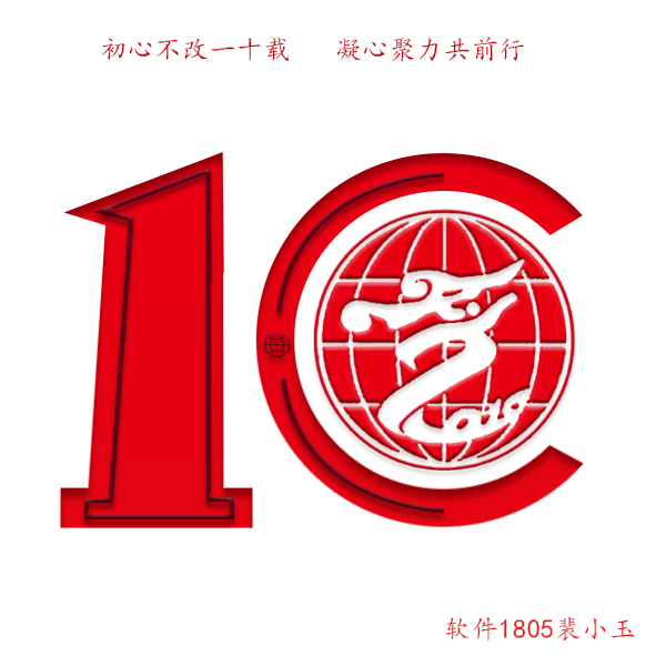该作品是为了庆祝新浦金350vip官方成立十周年而制作的,是一个以数字十为基本图的logo,选用红色黄色为基本配色,象征学院会越来越好,今后无论举办什么都会红红火火。