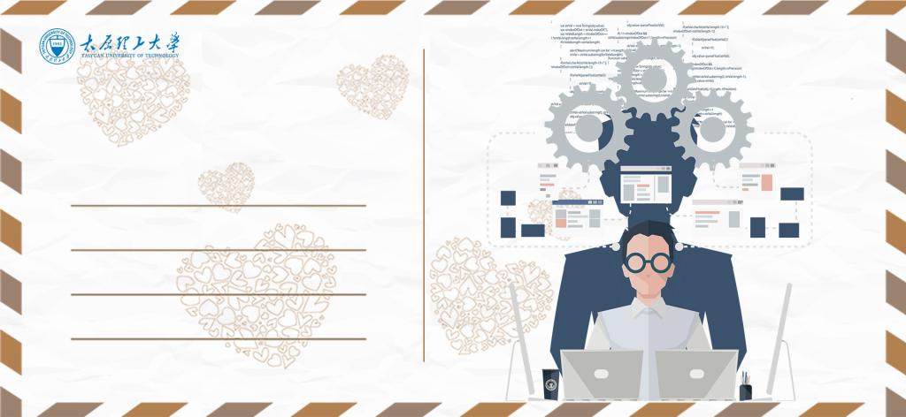 2. 反面左侧为明信片书写内容部分,右侧的图案为程序员积极努力学习工作时的情景。