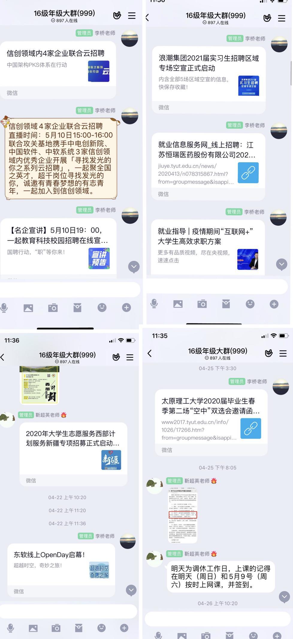 面对特殊时期学生无法进行面对面的应聘工作,新浦金官网积极联系招聘企业进行线上的面试,积极把相关就业信息第一时间在学生就业群中公布,让有兴趣的同学做到足不出户,在家通过线上招聘的方式对自己感兴趣的工作进行投递简历,面试工作。学校也针对疫情期间,开展了多次2020届毕业生春季空中招聘会,改变了以往招聘会的招聘模式,新浦金官网为了响应学校的号召,也第一时间将最新的就业招聘信息通过网络通知到每一位学生,尽可能地为学生在安全的招聘环境中提供好就业服务。