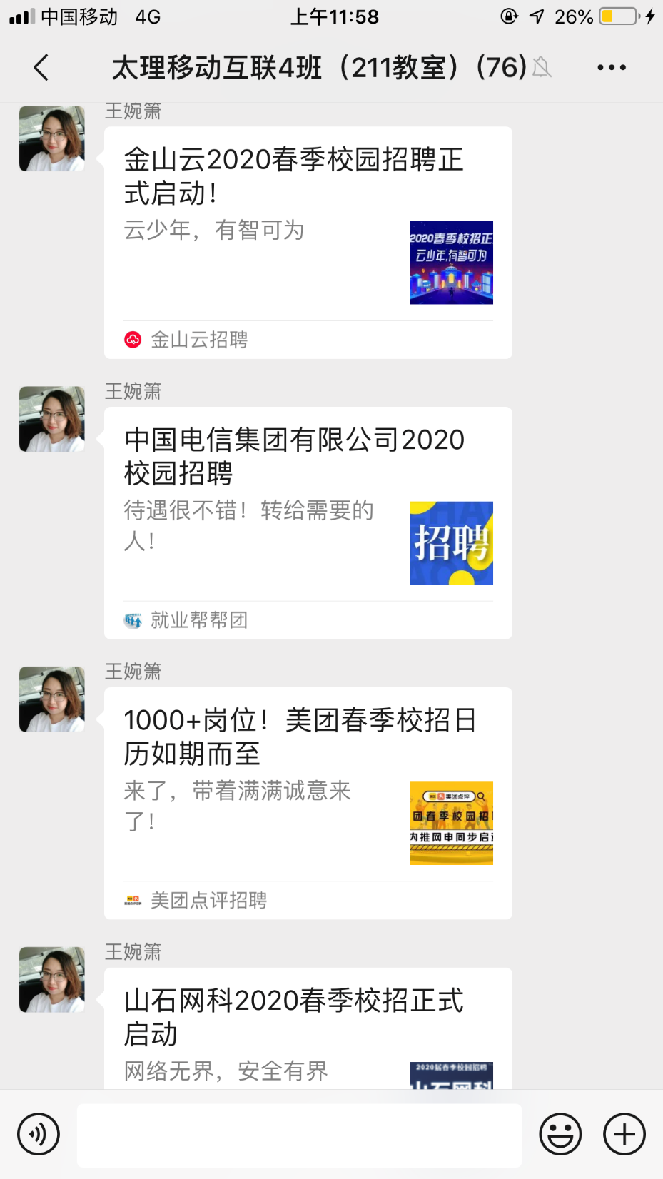 线上推荐:10月开始,就业部在太理就业班QQ群“新浦金350vip官方1班”“新浦金350vip官方2班”里每周发布不低于3次就业信息(公司简介、岗位要求、薪资待遇等),激发学生就业欲望,建立个人就业目标。整体来说太理的同学积极程度比较高,不过有少部分同学极少主动与就业老师沟通,性格比较内向,针对这种情况,就业部老师会与同学私下交流沟通,了解他们的性格,兴趣爱好,以及初步的职业规划,为其做了职业分析。