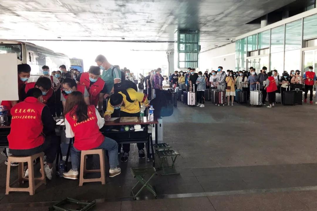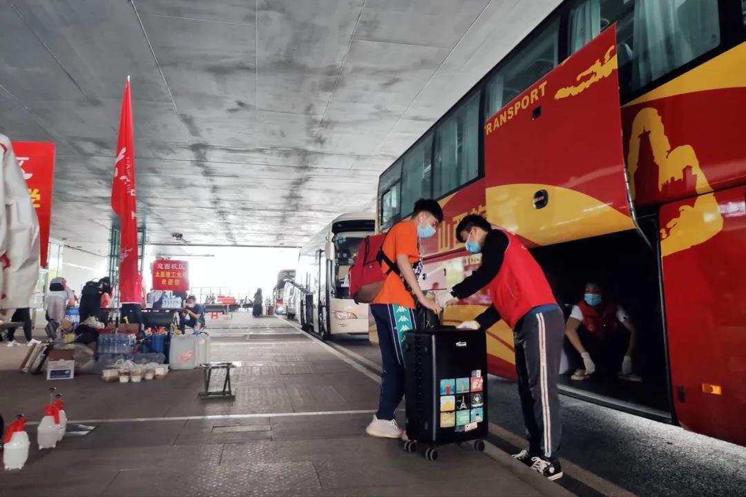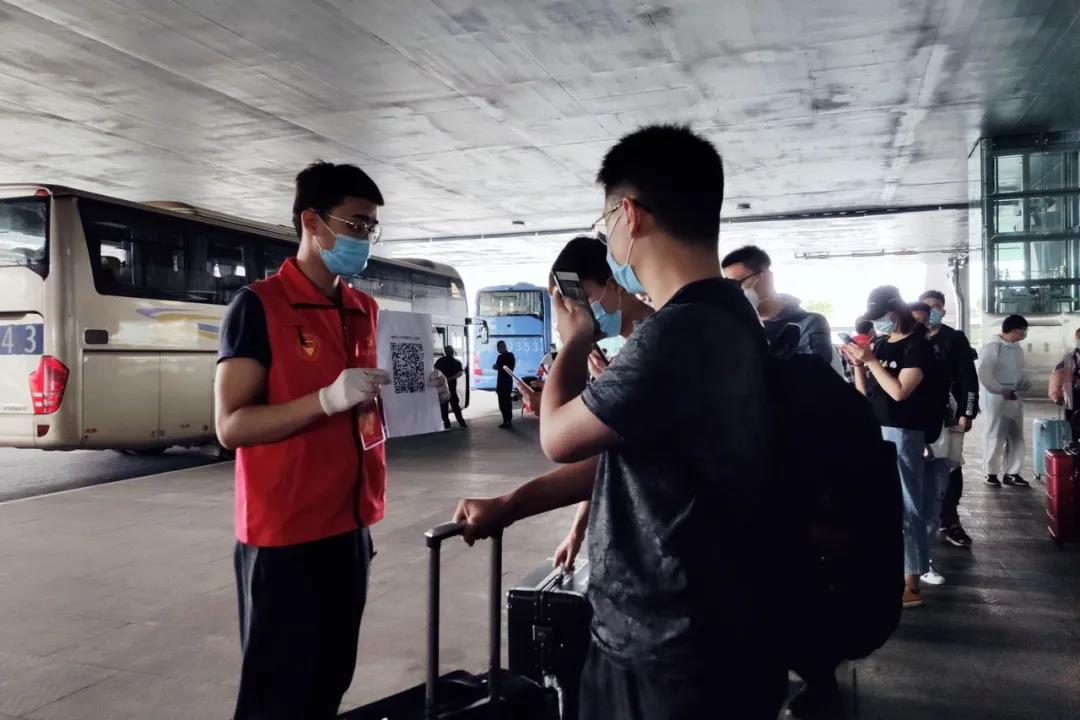 丢失身份证,他们联系车站的失物招领最终找回;坐错校车、丢失行李,他们紧急联系司机帮忙找回;出错站口,他们一个个电话详尽指引;扫码失败,他们联系学生辅导员确认身份核验上车;健康码异常,他们及时上报,研判处理;物资短缺,他们紧急联系校内物资组迅速补充……一个个突发事件,带队老师和志愿者们都理智冷静一一化解。