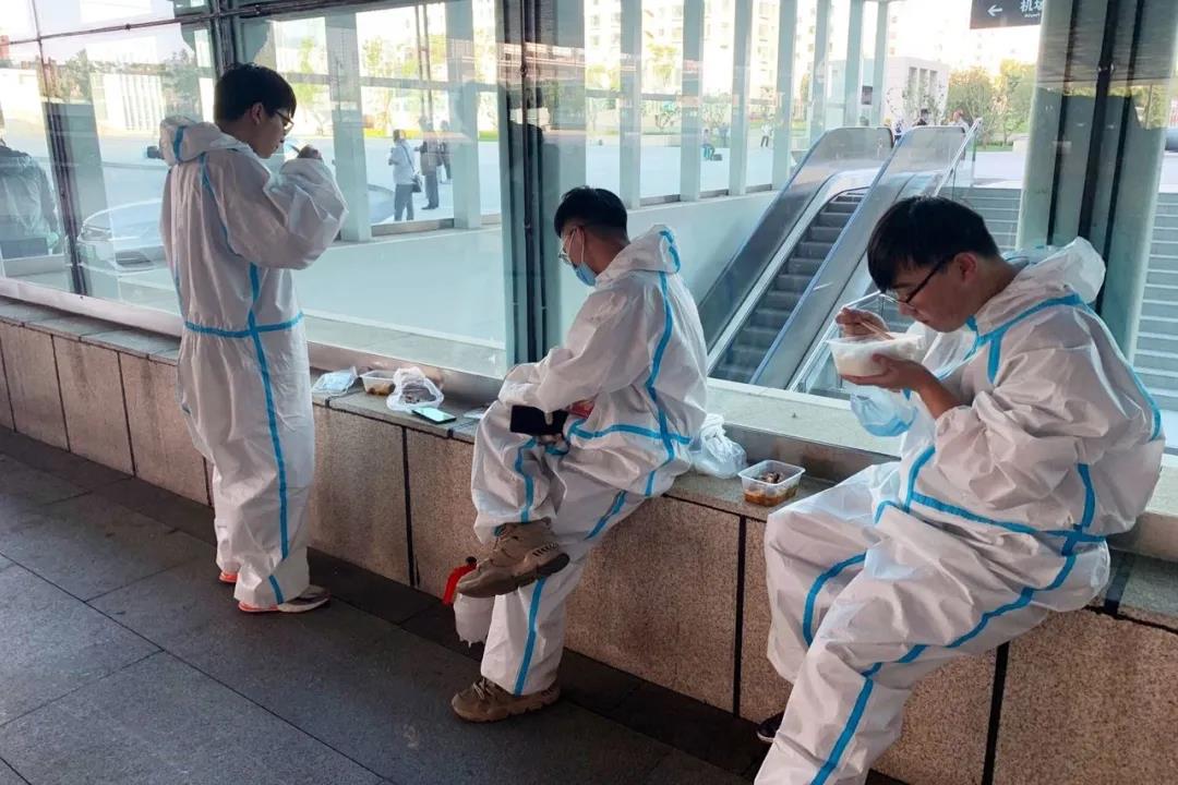 这四天,大家经历了早上6:30集合夜里23:00收工的高强度工作,经历了站立十几个小时的腿脚酸疼,感受了350人同时到站的庞大阵势,体验了在近30°C天气下长时间穿着防护服的闷热,但同时,也看到了明向清晨6点的阳光,看到了夜里闪耀的星辰,收到了同学们的无数句“谢谢”,做到了让同学们安全顺利地返校,更收获了一同蹲着吃盒饭的革命友谊。他们是党员先锋队,非常时期,义不容辞,任务来了,干就对了。