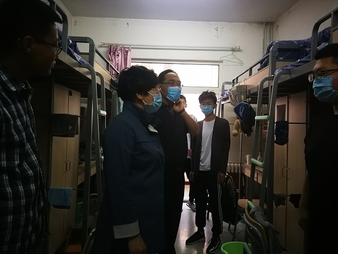 5月25日8点,软件学院党委书记池卫平、院长金燕、党委副书记吕晓勇、副院长曹锐、学工办主任郭飞及17、18、19级辅导员一行,对学院教学情况进行检查,并对返校学生上课情况和生活情况进行走访和慰问。