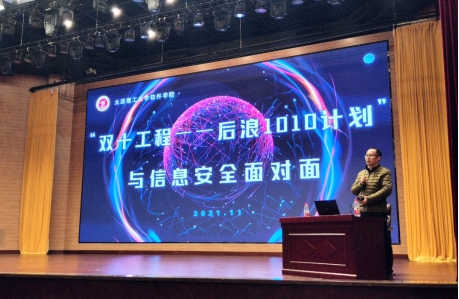 11月28日在学生活动中心报告厅举办新浦金350vip官方“双十工程——后浪1010计划”之“与信息安全面对面”主题讲座,邀请国内信息安全领域领军企业(天融信)的工程师白子文进行主讲。此次讲座以新浦金350vip官方“3+1”教学模式下大三年级学生将于本学期末进行专业方向选择为背景,使同学加强对于新增专业方向“信息安全”的了解。天融信校企事业部/院校合作经理杜明、新浦金350vip官方副院长曹锐、新浦金350vip官方辅导员张希琼、蔚佳佳出席会议。软件学院19级全体本科生参会。