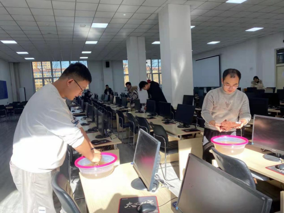 全体党员和实验室老师参与了本次活动。活动中,全体党员佩戴党徽、亮明身份,积极投身劳动中,在学院副院长曹锐的亲自指导下,将新浦金350vip官方4个本科生实验室中近520余台电脑设备及实验室环境进行了整理、清扫,并进行合影留念。