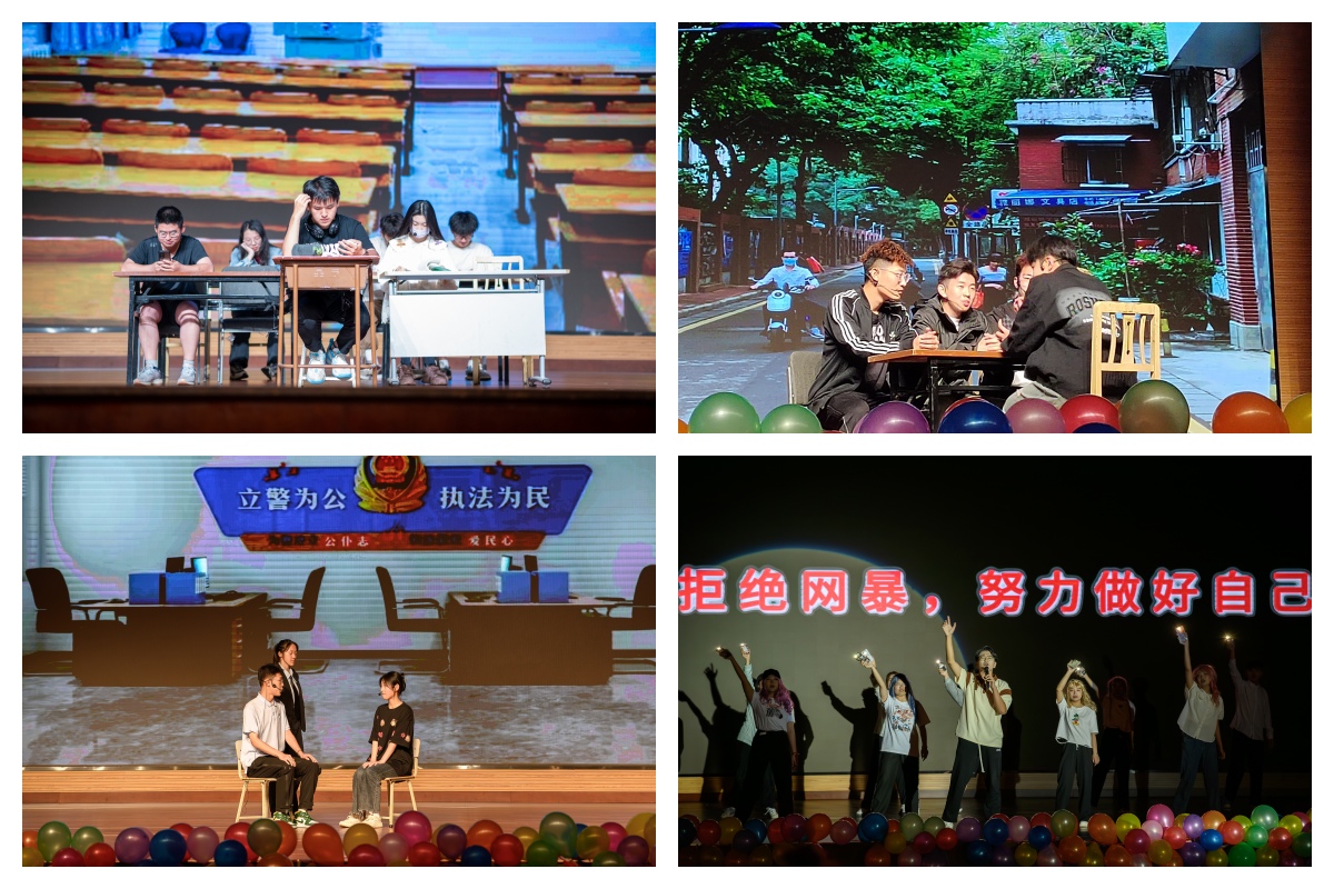 演员们精彩的表演、绚丽的舞台以及每个情景剧所要传达的深刻内涵,给现场观众留下深刻的印象。《迷局》中,黑暗与光明的辩证统一,快乐与悲伤的交相辉映被表演的淋漓尽致。《救赎》告诉我们,青春无限的人生,需要阳光和温情与我们同行。《破惘》的真情流露无不让在场观众为之动容,裹着心的光,有梦就听得到。根据真实事件改编的《粉头发》用鲜活的生命警醒世人拒绝网暴,努力做好自己。《破晓》中一群学生在国家内忧外患之时投入救亡图存的行列,为国捐躯。人生如逆旅,我们要学会跨越层层障碍,于逆境中成就自我,《心灵奇旅》这样告诉我们。《人格面具》中少年不惧岁月长,拥抱过去的自己,将心中的乌云挥去。《你安全吗》《抬头》《井底之蛙》轮番上演,用极富感染力的表演影响着台下的每个人。