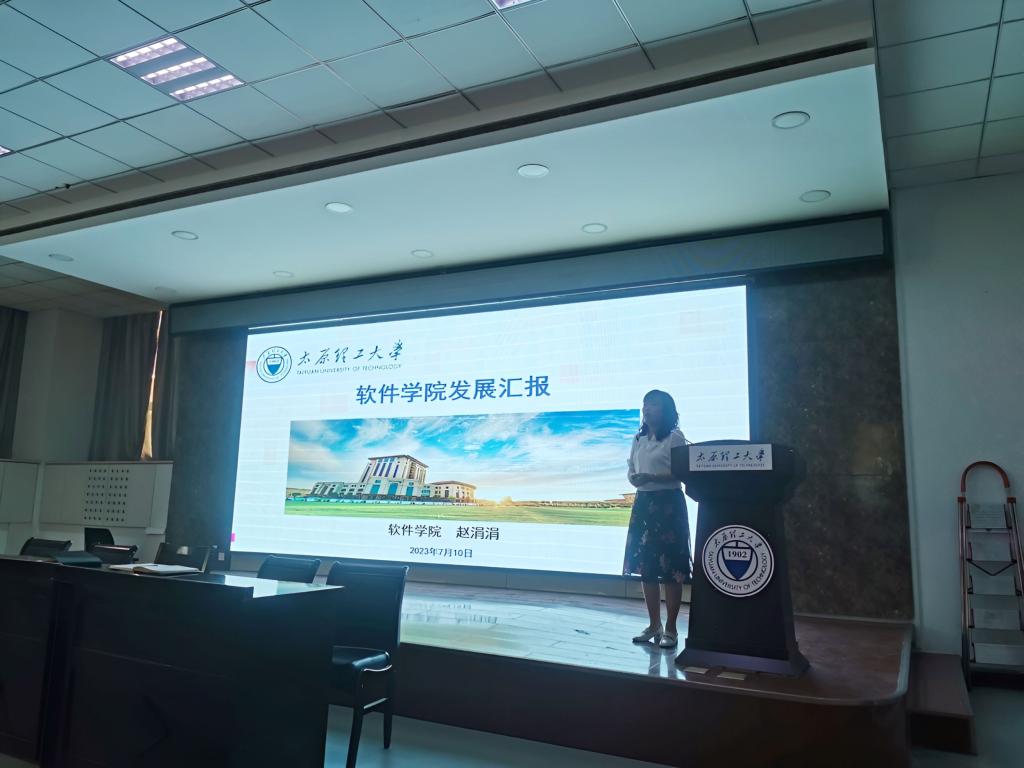 首先,赵涓涓院长从学科建设、人才培养、学科竞赛、科研成果、师资引育、学生就业等几方面对学院半年来取得的成果进行了通报总结,并就新学期工作计划进行了安排,提出了“1个目标”+“6个方向”+“8项措施”的168行动计划,即以培养有太原理工特色的“工程为主”,全面提升“高阶编程能力”的“能力”+“素质”为目标的新浦金350vip官方特色软件人才;重点围绕信息技术前沿的强化基础编程+工业软件+信创软件+军工软件+信息安全+人工智能的“6”个方向为科研突破方向;以课程思政教育、学院培养方案的修订、以软学软提升学生动手能力、以赛促教提高学生编程能力、深度进行校企合作、做好师资引领、举办高端会议和准备第二轮特色示范性新浦金350vip官方的申报等8项措施促进学生全方位培养,进一步提升学院科研能力、教学能力,推动学院事业全面发展。