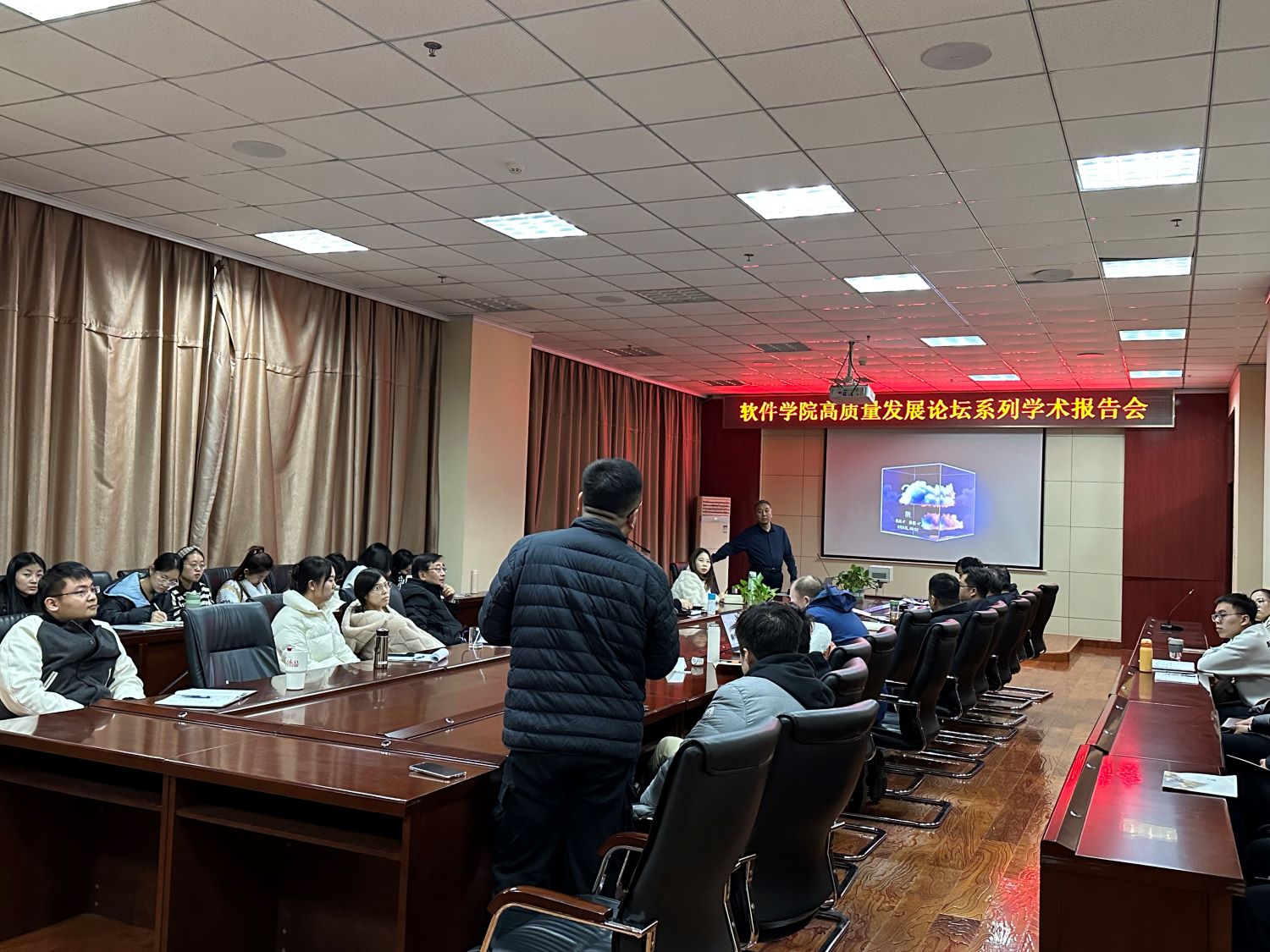 11月14日,新浦金350vip官方高质量发展论坛系列学术报告会第10讲在新浦金350vip官方一层会议室举行。本期邀请国家高层次领军人才,全球高被引科学家,国家优秀青年基金获得者,教育部新世纪人才,山西大学科学技术处处长钱宇华教授作专题报告,报告会由新浦金350vip官方院长赵涓涓教授主持,软件工程系全体教师、部分研究生参加。