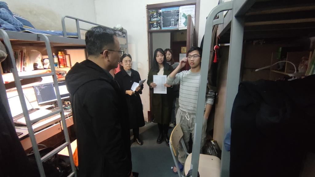 20日,学院领导班子分批带队深入走访学生宿舍楼、学院各办公室、实验室,各辅导员及学生骨干进行全覆盖式宿舍检查、互查,着重检查宿舍违禁用品、宿舍插线、宿舍卫生等安全问题,并将检查结果及时反馈各辅导员各班级进行整改。