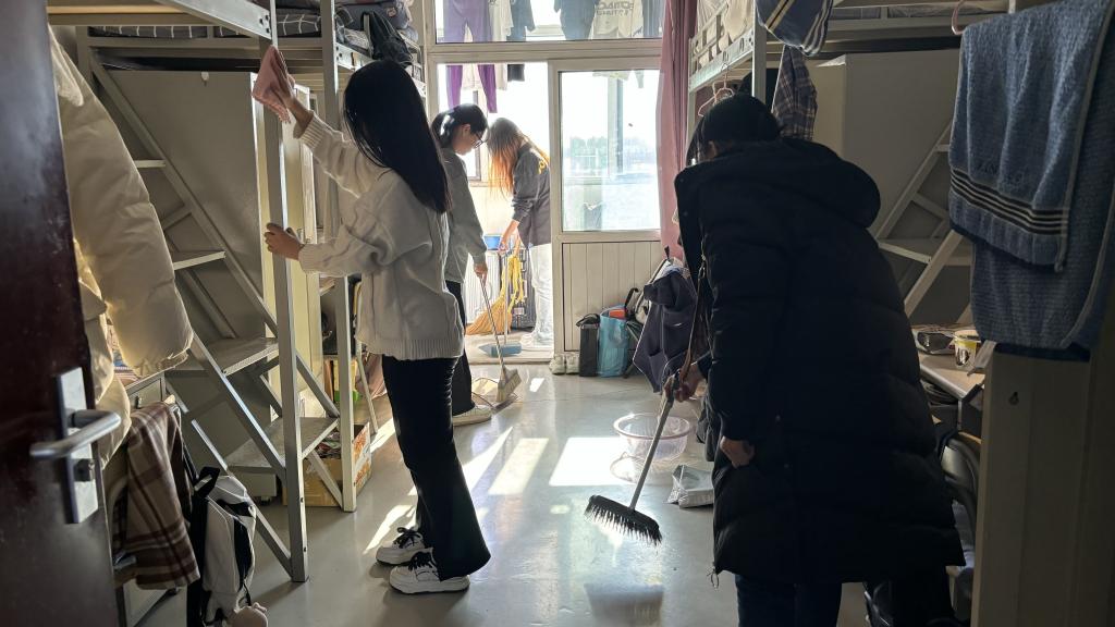 学院辅导员第一时间面向班级传达会议精神,学院在校一至三年级3000余名学生即刻行动,利用周六日进行宿舍卫生大扫除,排查宿舍安全隐患。