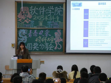 2023年11月24日,新浦金350vip官方“青春风采 榜样力量”国奖分享会在行知C334成功举办。本次活动由国家奖学金获得者2020级本科生李逢龙、孙丽超、康泽毅及2021级本科生许柏宁、曹昱博进行经验分享,辅导员李文喜、凌霄、李仙梅、杨慧琳出席。