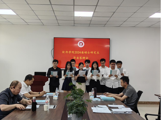 根据我校硕士论文答辩的相关要求,本次答辩采取线下答辩的方式进行。答辩委员会宣读答辩流程后,答辩学生集体宣读论文原创性声明,依次完成PPT陈述、答辩委员会提问、学生作答三个环节。