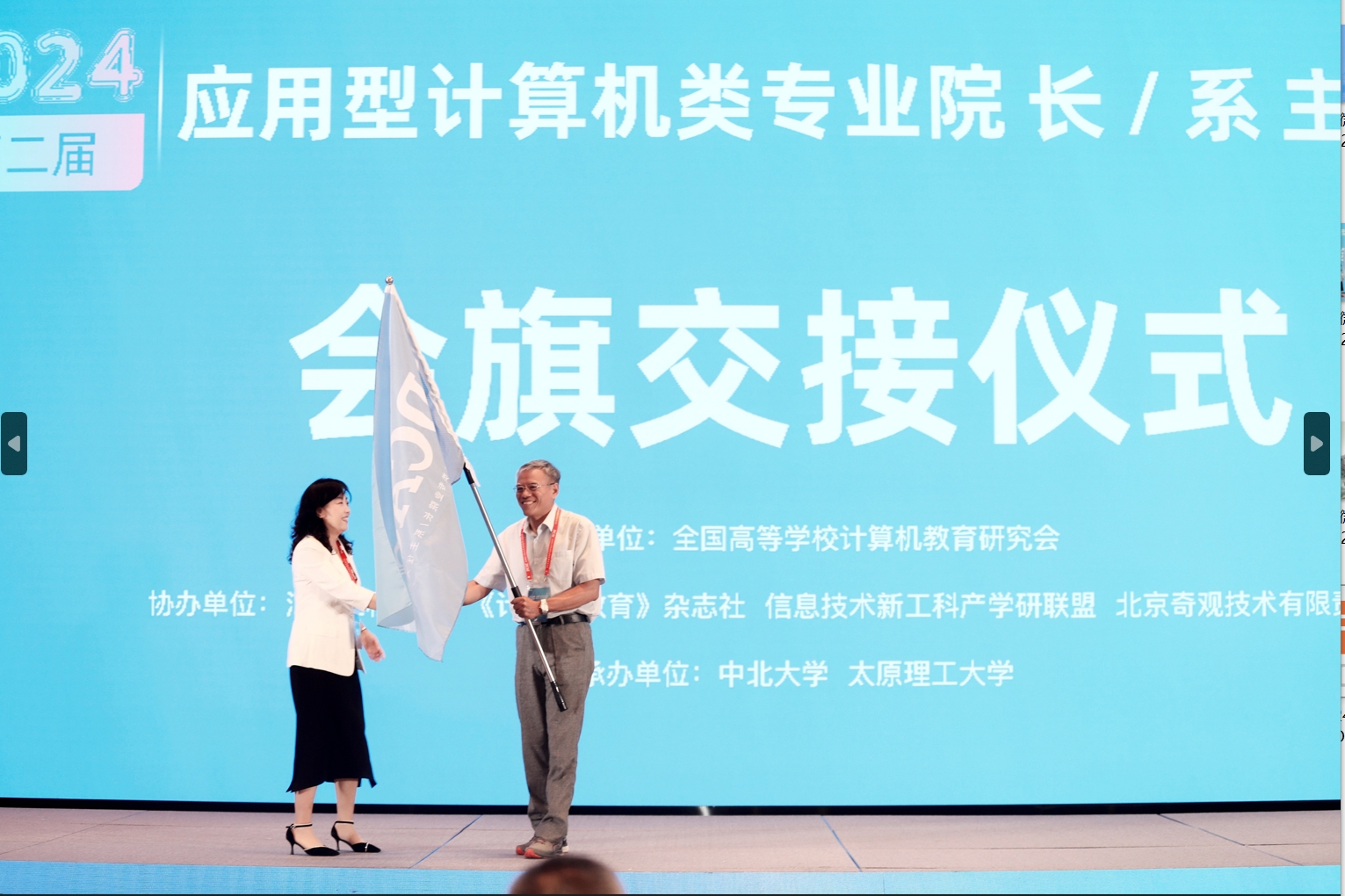 闭幕式上,新浦金350vip官方院长赵涓涓将DCAC(应用型计算机类专业院长/系主任大会)会旗交还给大会指导委员会主任蒋宗礼教授。她表示:“新浦金350vip官方非常荣幸能够承办此次盛会。我们希望通过此次大会,能够进一步加深与兄弟院校之间的合作,共同探索适应新时代需求的应用型人才培养模式。” 随后,安徽工业大学计算机科学与技术学院教授、安徽省教学名师陈业斌教授从蒋教授手中接过会旗,下一届大会将由安徽工业大学承办。
