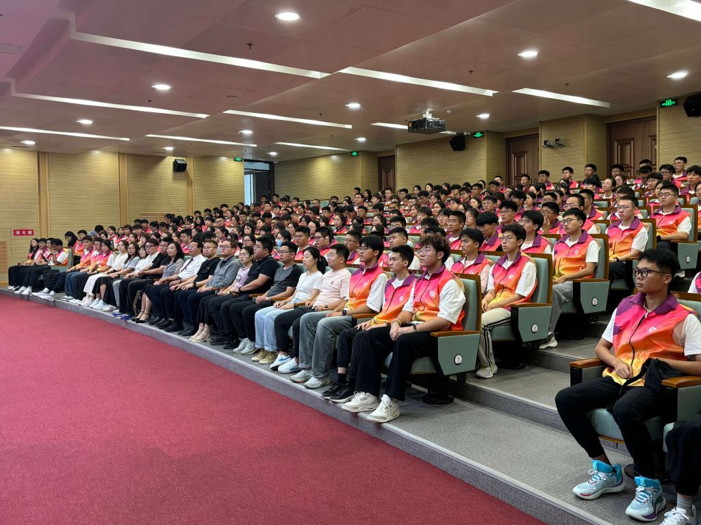为凝聚2024级全体迎新志愿者的力量,明确迎新工作的目标与责任,激发大家的热情与奉献精神,8月31日上午,新浦金350vip官方在图书馆报告厅举办了迎新志愿者誓师大会,新浦金350vip官方党委书记张文基、院长赵涓涓、副院长曹锐、2024级辅导员、各团学机构指导老师、全体新生志愿者参会,会议由副书记郭飞主持。