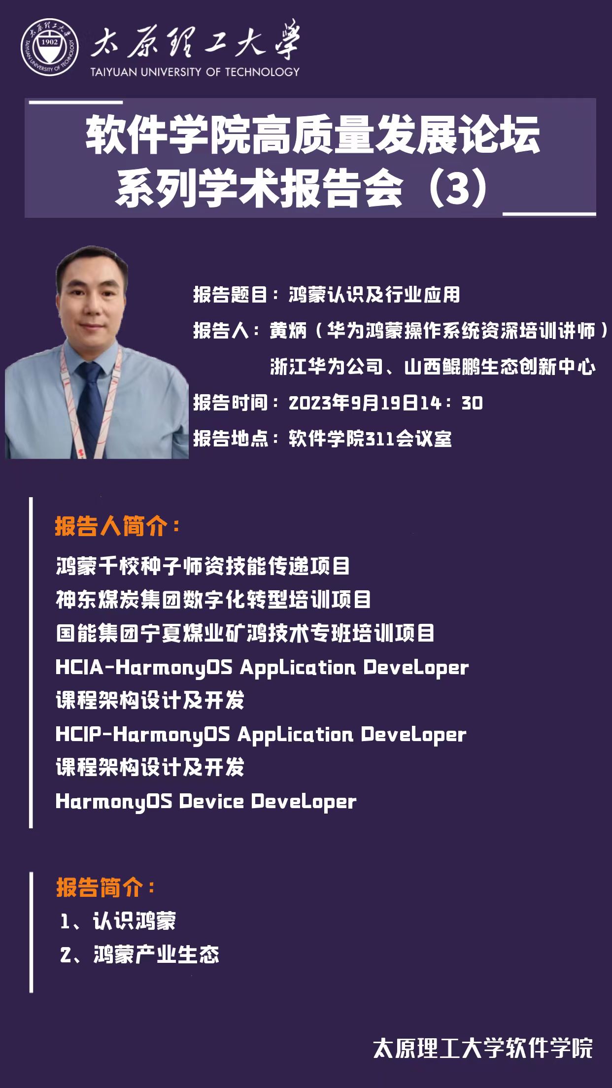 新浦金350vip官方高质量发展论坛系列学术报告会(三)—《鸿蒙认识及行业应用》