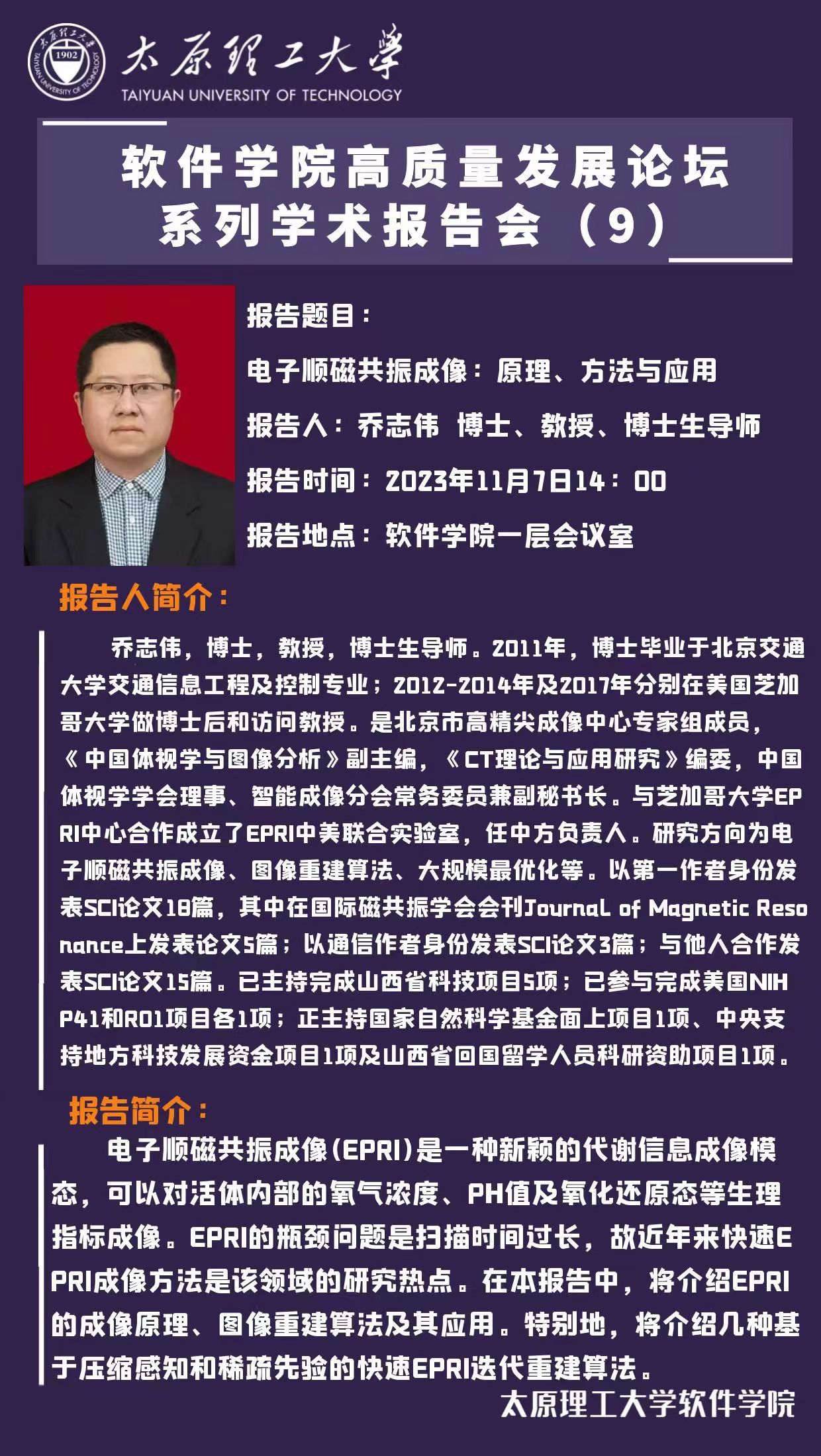 新浦金350vip官方高质量发展论坛系列学术报告会(九)—《电子顺磁共振成像:原理、方法与应用》