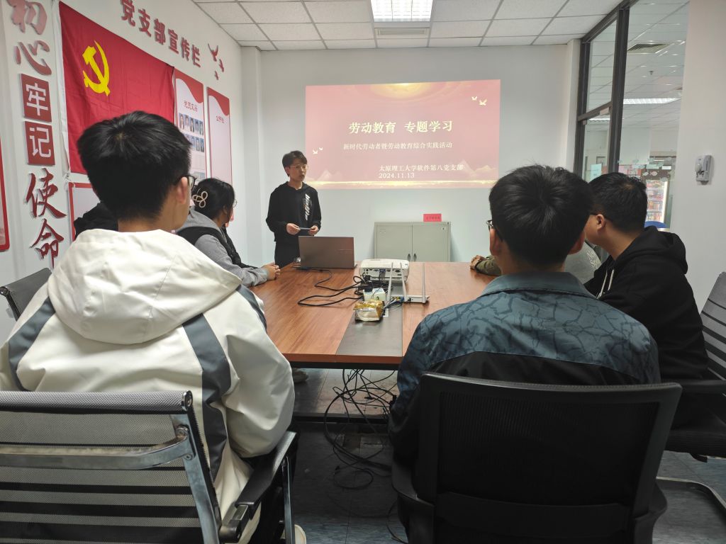 11月14日,软件第八本科党支部携手天津东软实训实习基地,在党员活动室组织开展劳动教育专题学习实践活动,支部全体党员参加。