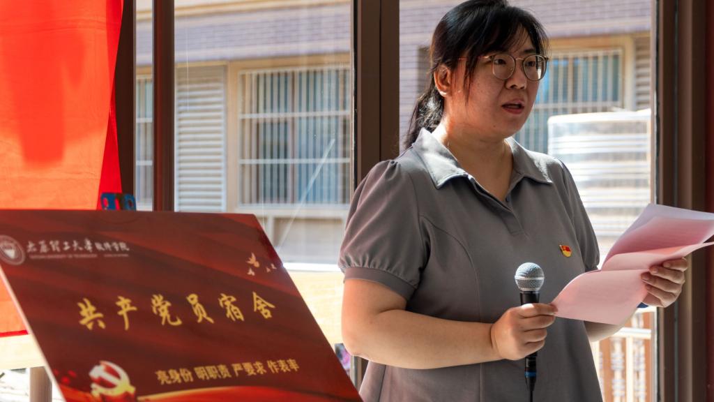 授牌仪式上,李佳欣同学代表全体学生党员表态,要以“一屋不扫何以扫天下”的精神督促自己,真正发挥“一个党员一面旗帜”的模范带头作用。发言结束后,赵涓涓与其一起揭牌。