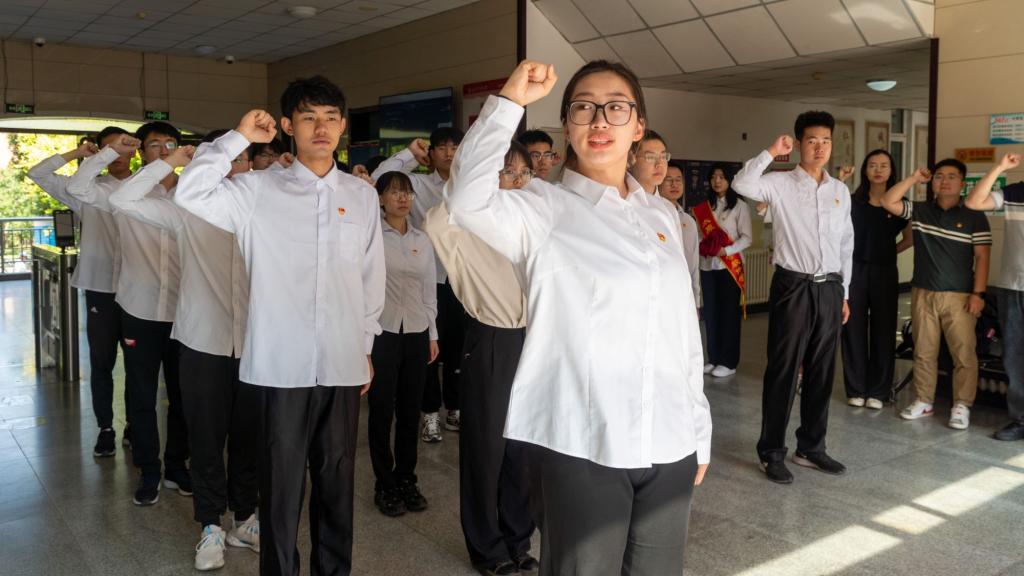 至此,学生代表李佳欣带领现场学生党员重温入党誓词,让学生党员时刻铭记身份,切实增强学生党员的责任感和使命感。
