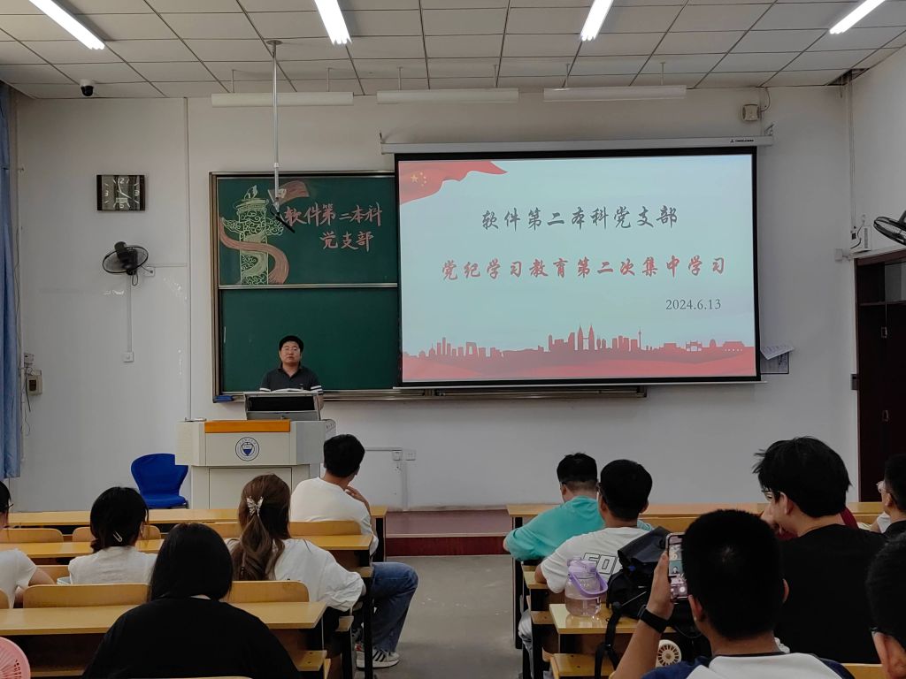 为深入贯彻落实全面从严治党要求,进一步提高党员遵规守纪的自觉性,培养党员学条例、明底线、守党纪、知敬畏的意识,全面落实党纪学习教育总要求,软件第二本科党支部于6月13日在行远楼B122组织开展党纪学习教育第二次集中学习,支部全体党员参会。